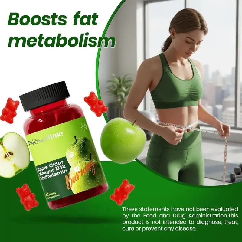Apple Cider Vinegar Gummy VitaminsCount - Vitamin B12, Gelatin-Free, Gluten-Free, Vegan & Non-GMO,ACV Supplement | Apple Flavor Optimum Edible Dietary Fitness
